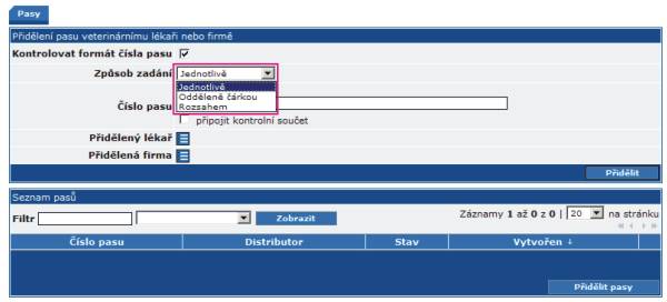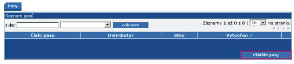Zobrazí se Vám Seznam vámi distribuovaných pasů. 2 krok Klikněte na "Přidělit pasy"