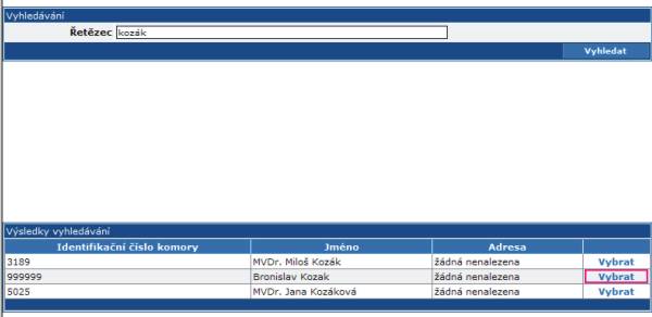 Zadejte název lékaře nebo firmy a klikněte na "Vyhledat"